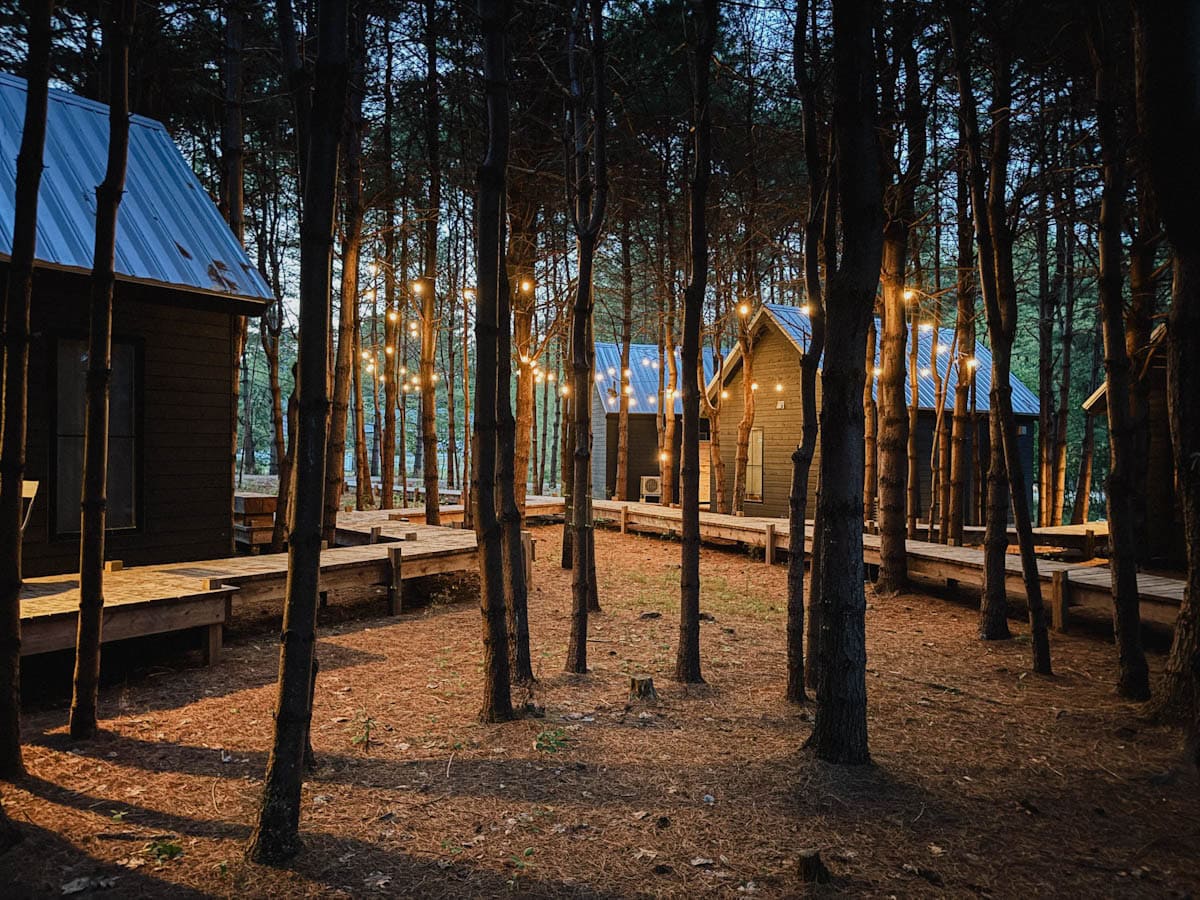 J’ai passé une nuit dans un des inoubliables chalets de Black Forest Cabins, comme base centrale pour visiter le village. En arrivant ici, on se croirait dans un village scandinave, pour un instant. Les cabines, magnifiquement emménagées, sont liées entre elles et la zone de sauna et de feu de camp par des plateformes en bois.