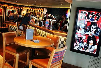 Un des 171 « maillons » de la chaîne créée il y a 43 ans (le 171ème ouvrant tout prochainement à Hide Park à Londres), et le groupe Kiss de s'afficher (presque) grandeur nature « stroboskopiquement » histoire de vous plonger dans l'ambiance, car, ici, ne vous y trompez pas, ça balance fort ! Les décibels ne vous exploseront certes pas les tympans, et ce n'est pas le groupe Police qui y remettre bon ordre ! « SOS, SOS, SOS » … « Message in the Bottle » … Renatta, notre serveuse (pourtant Polonaise d'origine), nattes façon Mohawk, malgré de sérieux efforts de Français, nous expliquera, en Anglais, qu'elle n'aura pas vraiment goûté aux plats servis (une erreur de la grande direction ?), mais seulement à quelques nouveautés, ou cocktails de passage !