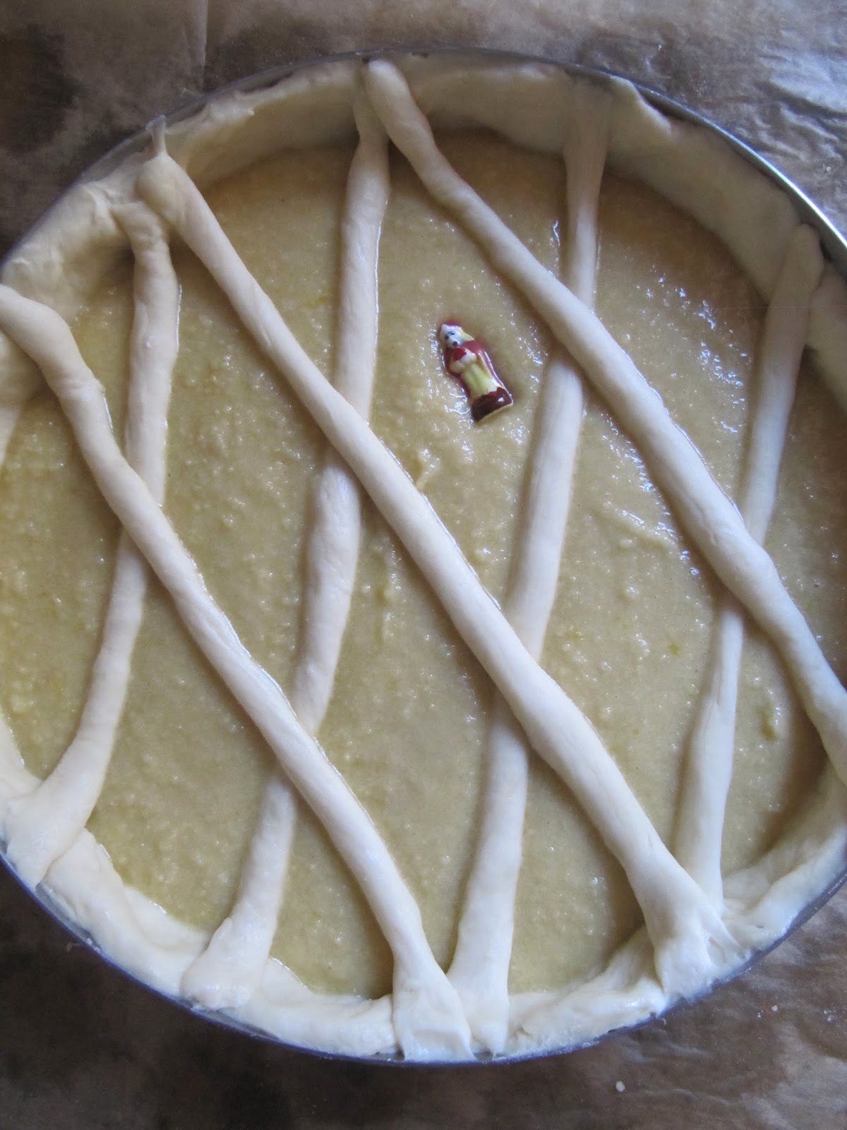 Ne pas omettre le zeste de citron qui ne se sentira pas mais offrira un mariage subtil. Garnir le cercle de crème, rouler de fins boudins entre les doigts et recouvrir harmonieusement la garniture de croisillons. Ne pas oublier la fève.