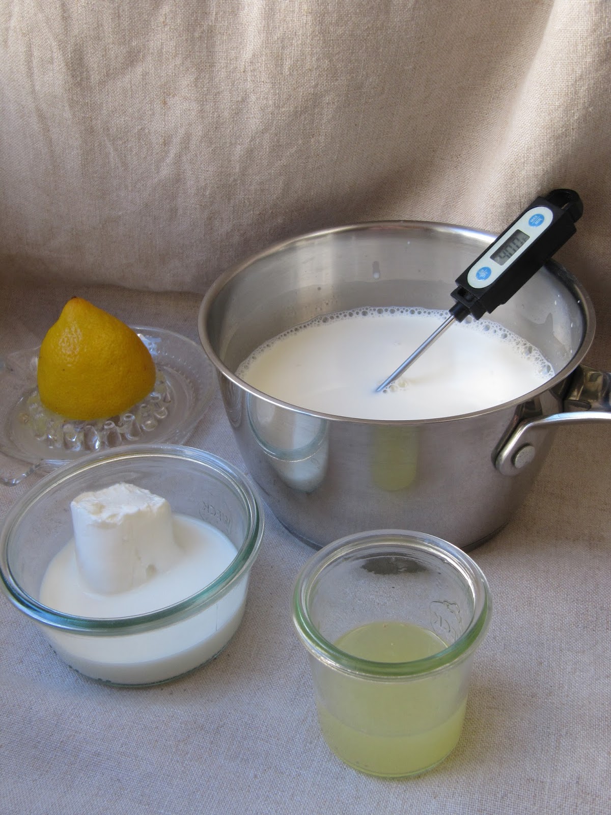 Dans un petit bol, mélanger le petit-suisse avec 5 cl de lait. Faire chauffer le reste de lait jusqu'à 40°. Hors du feu, ajouter le contenu du bol puis le jus de citron.