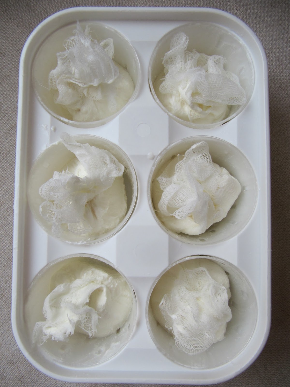 Verser le lait caillé dans une passoire tapissée d'une mousseline plutôt que dans des pots de faisselle avec égouttoir vendus dans le commerce comme ci-dessous, c'est moins pratique. Si l'on a une passoire à maille fine, même pas besoin de mousseline, j'en fais tout le temps, ça marche parfaitement !