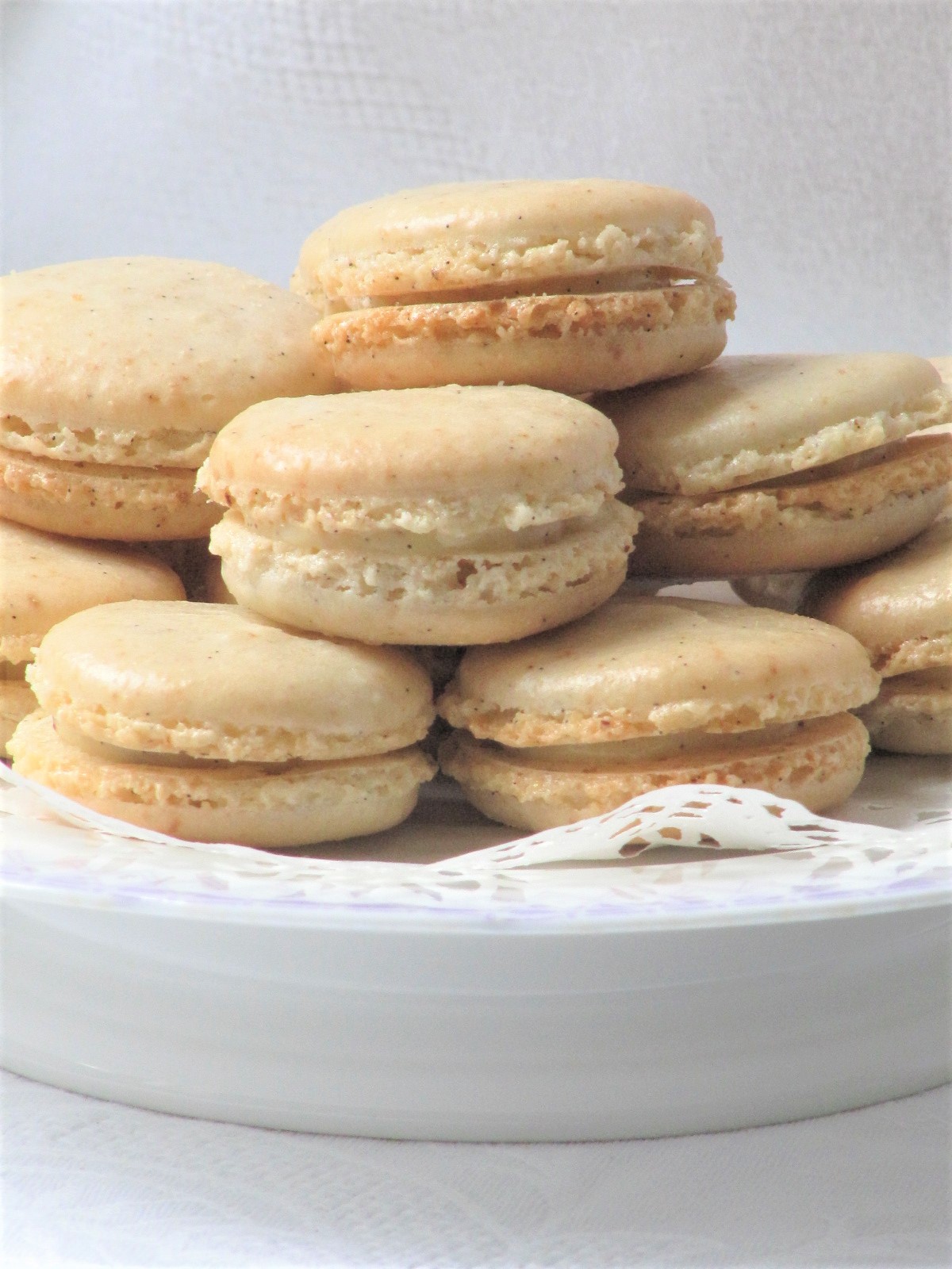 Il me restait une gousse de vanille bien charnue ainsi qu'une énorme quantité de blancs au congélateur, alors j'ai préparé des visitandines, un piegusek et quelques macarons afin de ne pas perdre la main. Je vous rassure, je n'ai pas tout préparé le même jour !